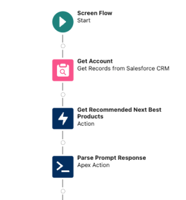 Remember, this will be launched in a screen flow. The screen flow will be distributed on the account lightning record page. It’ll take that account id, get the entire account record, then pass the whole record to the prompt builder.